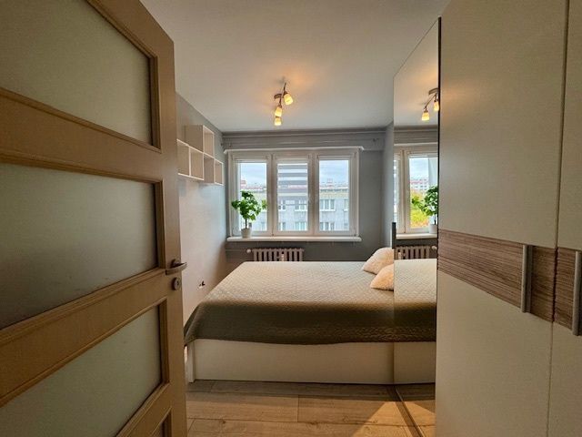 Polecam na wynajem bardzo ładne, wyremontowane, w pełni umeblowane i wyposażone mieszkanie 2 pokojowe, usytuowane na 4 (ostatnim) piętrze niskiego bloku na poznańskich Ratajach.