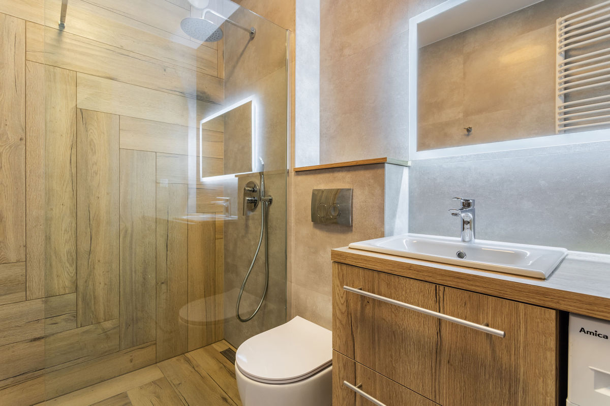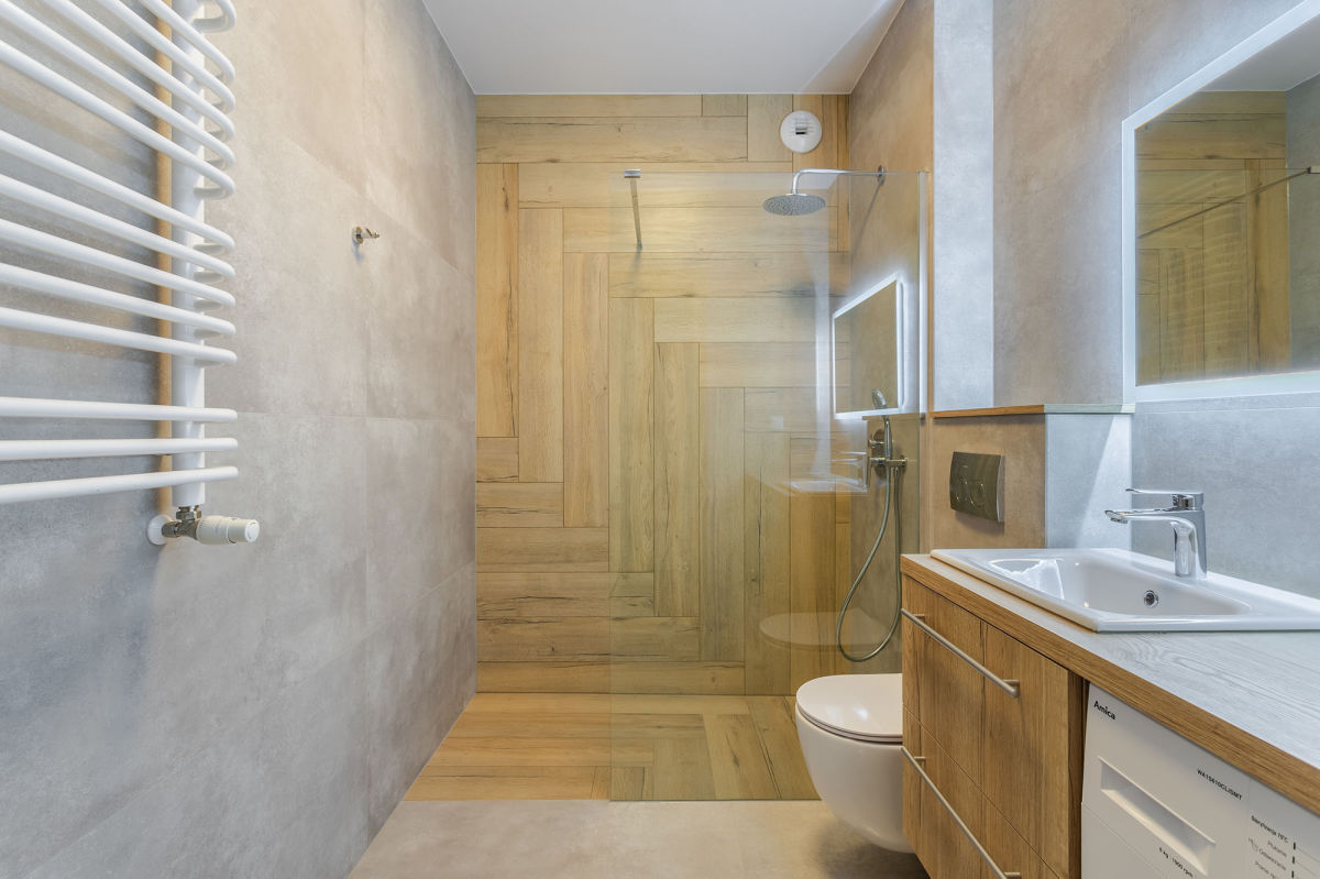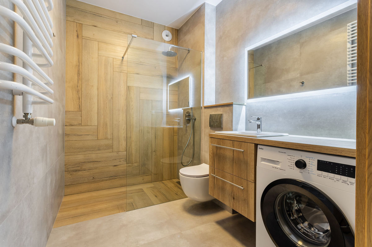 - łazienki z wygodnym prysznicem i wyposażonej w pralkę