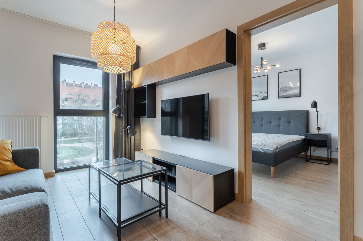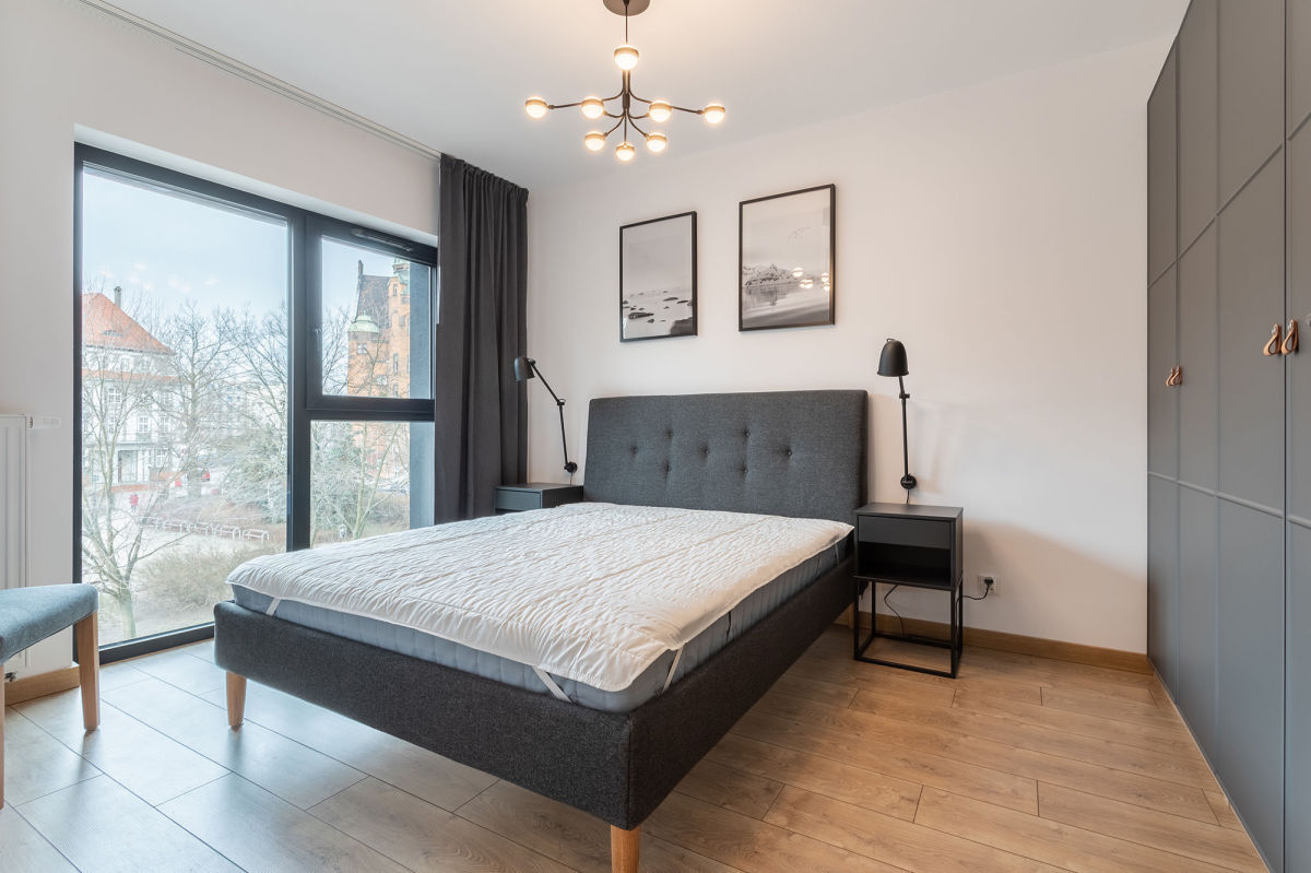 Polecam na wynajem nowy, komfortowy apartament 2 pokojowy usytuowany na 2 piętrze nowo oddanego budynku o zachwycającej bryle, w samym sercu Wildy, jednej z najdynamiczniej rozwijającej się dzielnicy Poznania, przyległej do ścisłego centrum miasta.