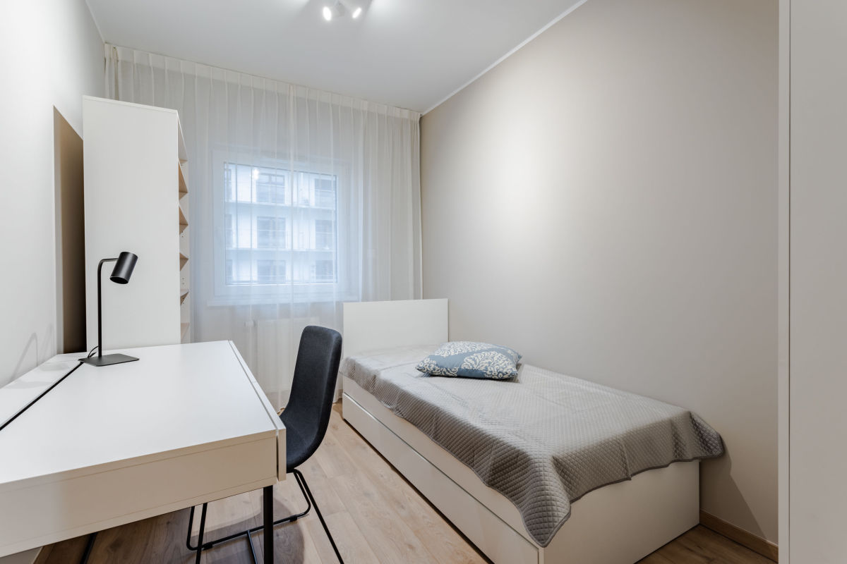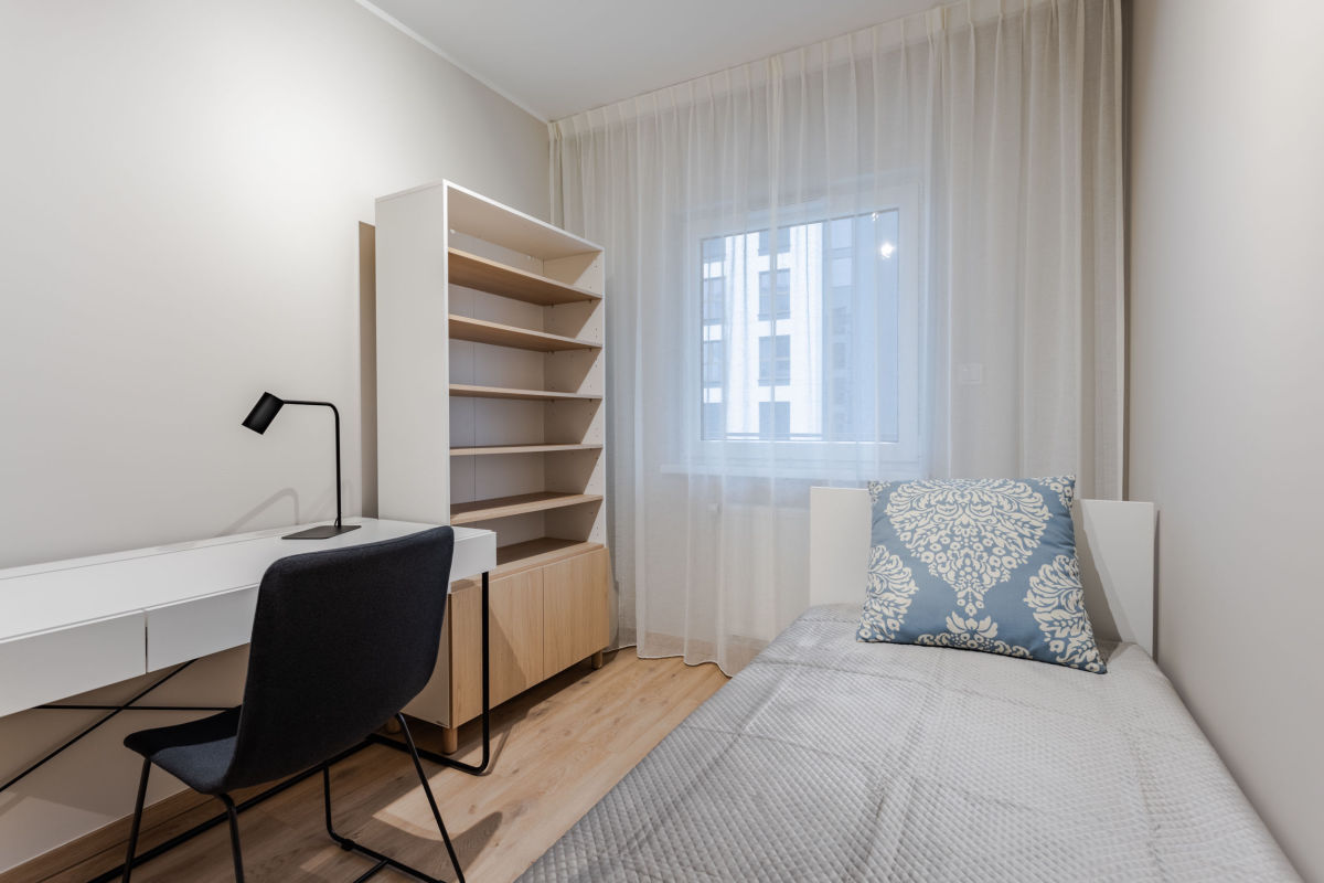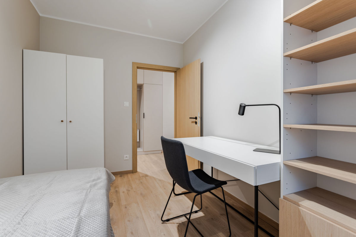 - sypialni z łóżkiem, biurkiem i szafą,