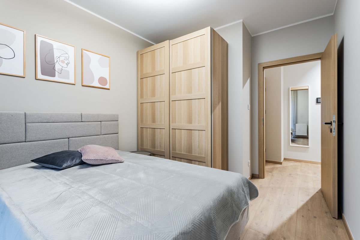- sypialni z łóżkiem i szafą,