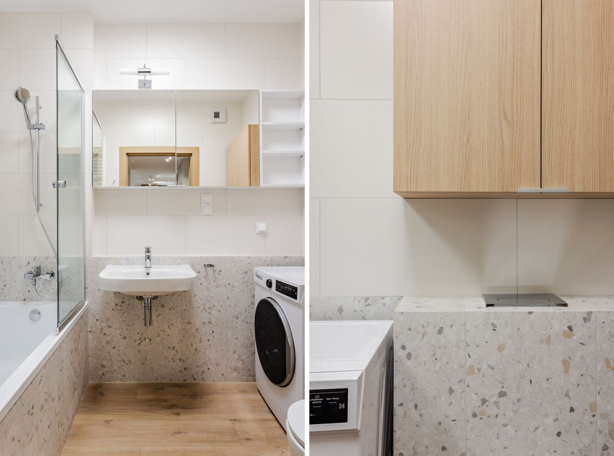 - łazienki z wanną, wyposażonej w pralkę
