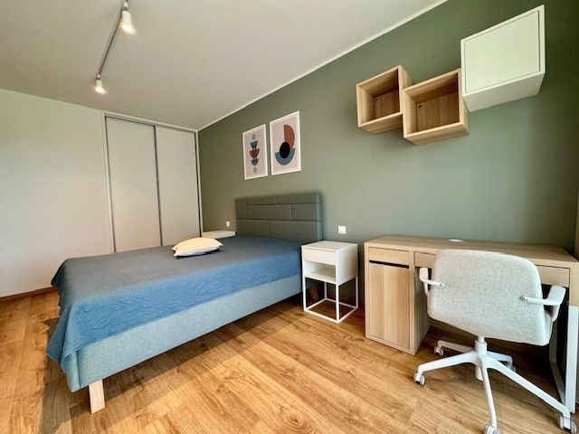 - sypialni z wygodnym łóżkiem i szafą oraz biurkiem z krzesłem obrotowym,