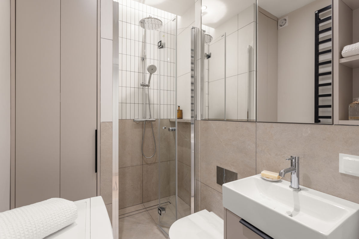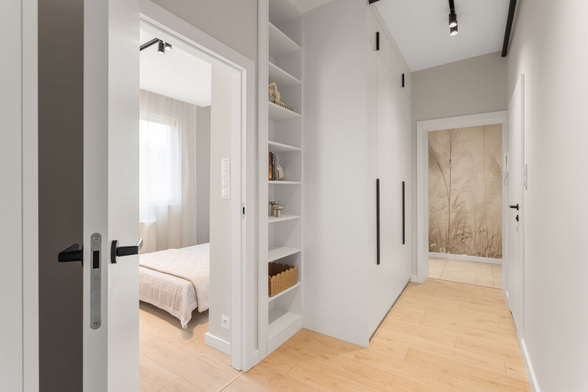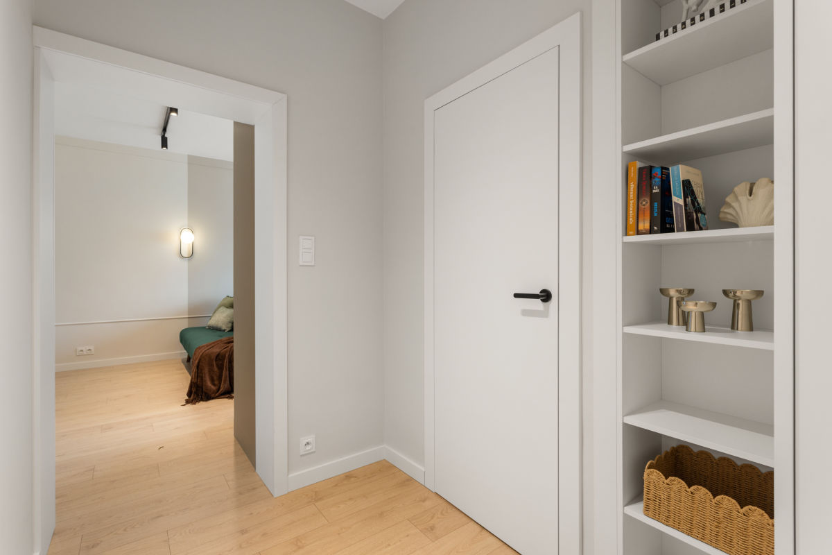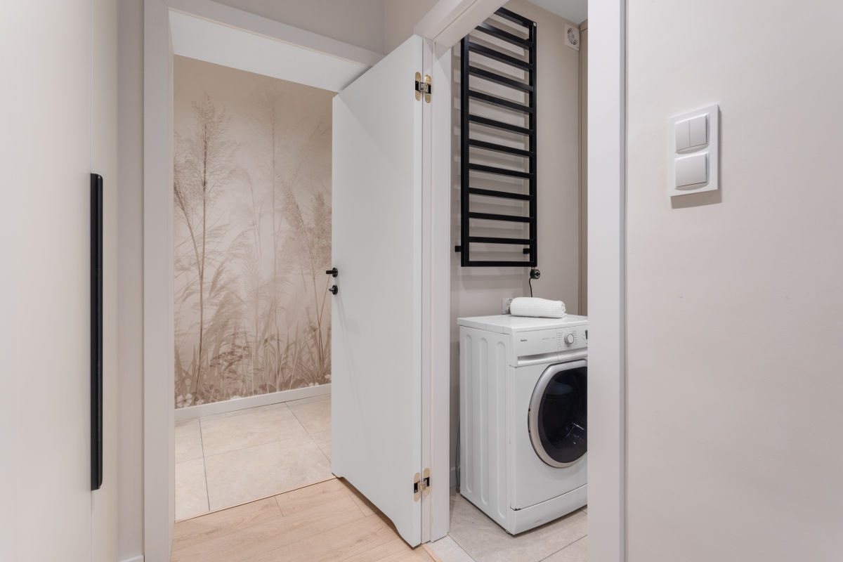 Lokal o powierzchni ok. 41 m² został zaprojektowany z dbałością o każdy detal, łącząc nowoczesną estetykę z wysoką funkcjonalnością. Mieszkanie składa się z przestronnego salonu z aneksem kuchennym, wyposażonym w sprzęty AGD (lodówka, zmywarka, piekarnik, płyta gazowa, okap), przytulnej sypialni z pojemną szafą wnękową, eleganckiej łazienki z komfortową kabiną prysznicową i pralką oraz funkcjonalnego przedpokoju z zabudową.