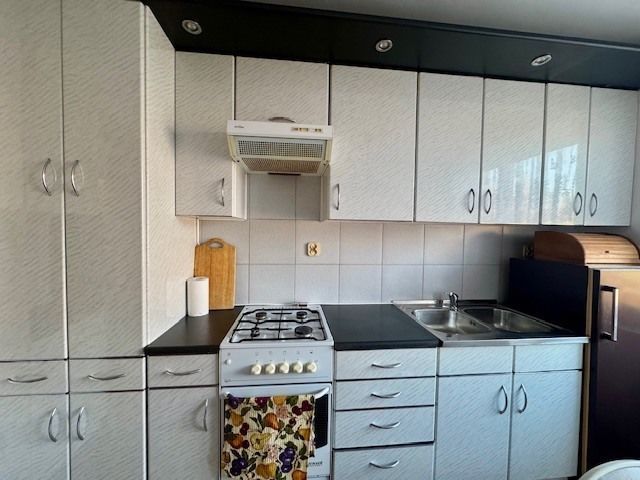 Mieszkanie ma ok. 54 m2, bardzo funkcjonalny układ i składa się z przestronnego, umeblowanego salonu z wyjściem na duży balkon, sypialni z dużą szafą wnękową, w pełni umeblowanej i wyposażonej kuchni (lodówka, piekarnik, okap), łazienki z wanną i bidetem (bez pralki, widoczna na zdjęciu jest własnością byłego najemcy) oraz przedpokoju z przestronną szafą wnękową. Niebywała zaletą tej nieruchomości są niskie koszty eksploatacji.